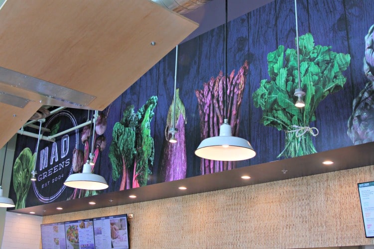 Mad Greens has a concept that healthy and delicious do not have to be mutually exclusive concepts. At Image Craft we feel the same way about service, quality and cost. We are able to provide excellent account management, deliver superior quality graphics installation at a fair competitive rate. No two Mad Greens restaurants have the same floor plan, but it is critical that the experience be consistent in every new location.