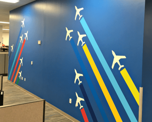Plain white walls are a blank canvas just waiting to be transformed with bold, dynamic, colorful wall coverings. Wall coverings can promote your brand to both internal and external stakeholders or inject color and texture to otherwise bland walls. Image Craft has helped every type of organization find their right solution from Fortune 100 companies to a single retail store and resorts with thousands of rooms or restaurants with a single wall. We have options for every need including both short term and long term, traditional adhesive, custom wallpaper, SEG fabric. and many others.